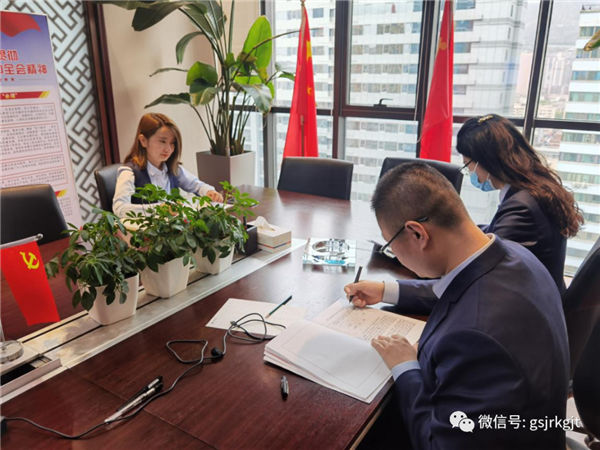 中信银行酒泉路支行支部书记黄小情详细介绍了支部党建工作和中信银行各条线的工作情况,展示了中信银行拳头产品,表示金控集团作为中信银行的重点客户,将发挥中信集团各板块的业务协同优势,为金控集团提供更加全面的金融服务。