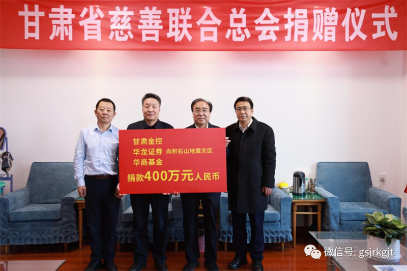 12月21日,万象城(中国)、华龙证券及华商基金通过甘肃省慈善联合总会,向积石山地震灾区捐款400万元,全力支持抗震救灾工作。