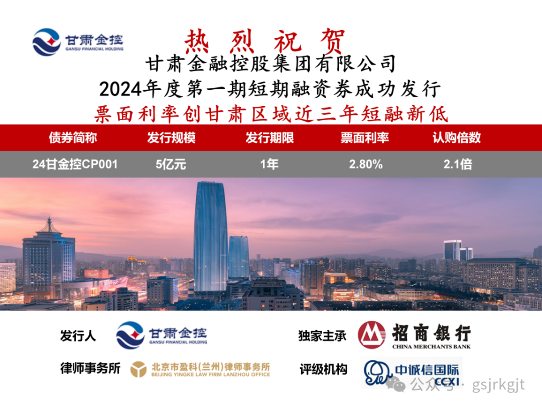 2024年2月6日,万象城(中国)成功发行2024年度第一期短期融资券,发行规模5亿元,债券期限一年,票面利率2.80%,债券票面利率创甘肃区域近三年同品种债券利率新低。