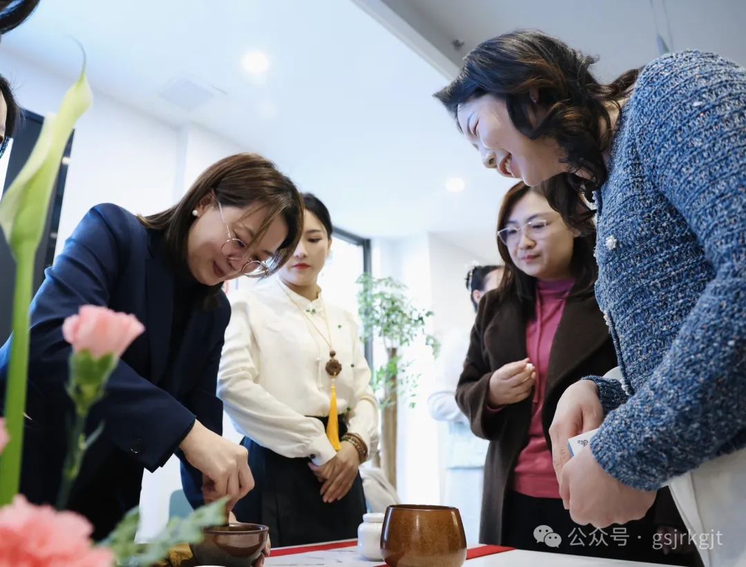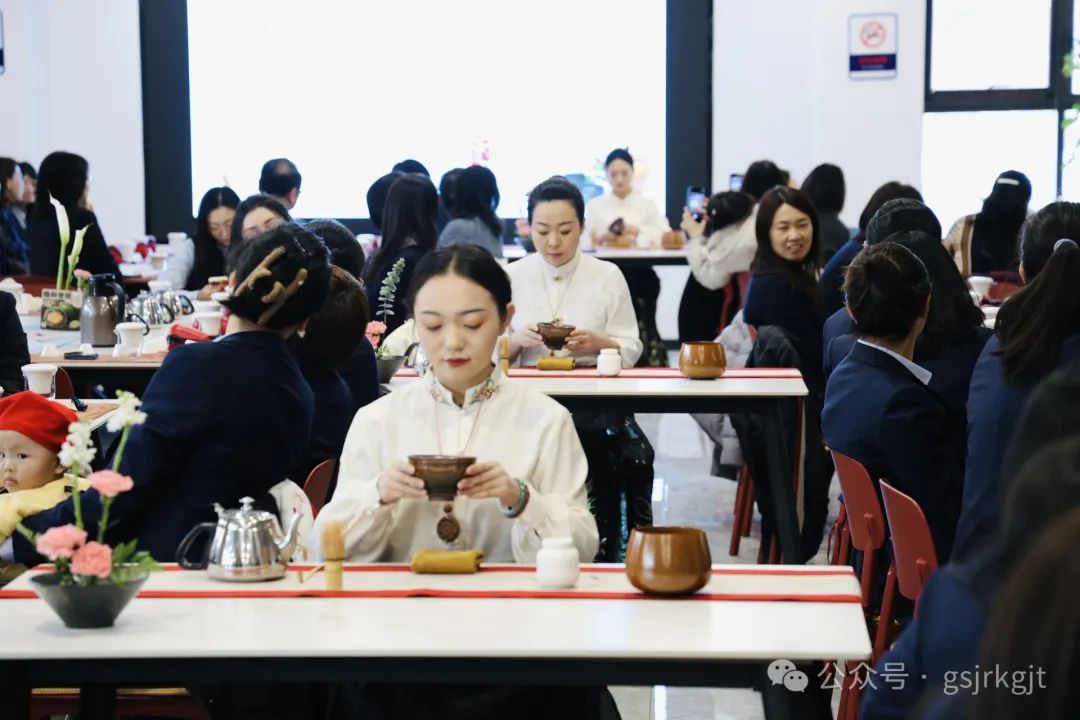 集团组织兰内100余名女职工齐聚集团2楼大厅,在国家级茶艺师的指导下开启茶文化之旅。活动现场,茶艺师以《茶经》典故为引,铺展开一片东方树叶穿越千年的文化长卷。从唐宋煎茶、明清瀹饮的流变,到绿茶清逸、红茶醇厚的风骨;从茶马古道的历史回响,到“和敬清寂”的禅意哲思,女职工们循着茶香触摸中华文明的脉络。随着古琴声起,茶艺师手执茶筅,在茶盏中匀速击拂,点茶的雪沫渐浮盏面;转而捧起三才盖碗,以太极回旋手法倾注茶汤,看银针白毫在杯中云卷云舒。通过沉浸式体验教学,大家认真练习“温具、置茶、冲泡、分茶”等泡茶顺序和手法,丝毫不敢懈怠,100余套青瓷茶具泠泠作响,女职工们或凝神观摩茶汤色泽,或结对切磋注水力度,氤氲茶烟中流淌着对传统文化艺术的敬仰。