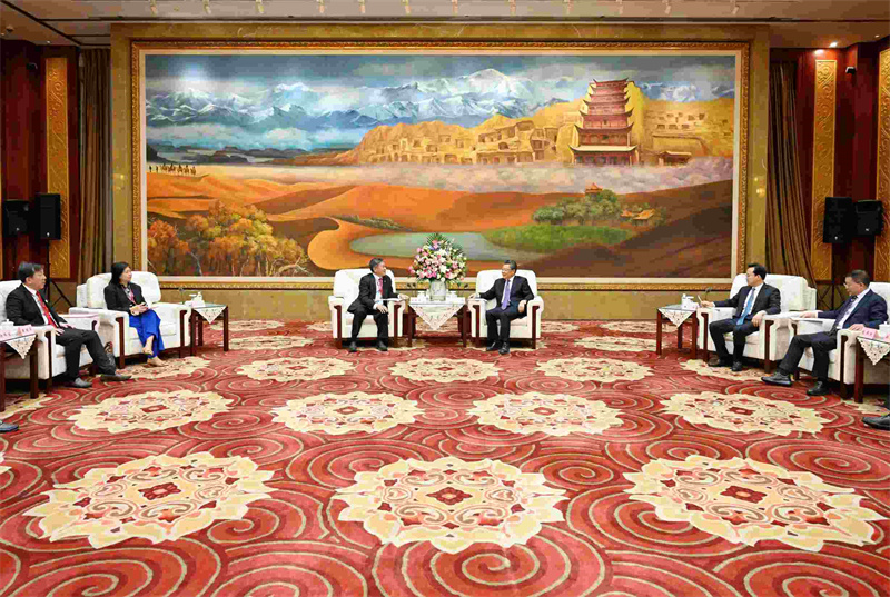 任振鹤对高泉庆一行来甘访问表示欢迎,并简要介绍了甘肃经济社会发展情况。他说,在习近平主席和新方领导人战略引领下,中新关系保持良好发展势头,甘肃与新加坡在科技、教育、文化、医疗卫生等方面的合作交流不断深化,人员往来更加密切。习近平主席指出,甘肃最大的机遇在于“一带一路”。随着高质量共建“一带一路”、西部陆海新通道建设、新时代西部大开发、黄河流域生态保护和高质量发展等深入实施和《区域全面经济伙伴关系协定》的全面生效,甘肃历史文化、资源禀赋、科教人才、工业基础、地理区位的组合优势正在加速释放,也为双方提供了更大市场、更多需求、更深层次的合作空间。新加坡中华总商会是新加坡历史最悠久的重要商团,在国际商业舞台上享有盛誉。希望商会充分发挥桥梁纽带作用,更多宣传甘肃、推介甘肃,推动甘肃与新加坡各领域合作再上新台阶。我们将持续营造市场化、法治化、国际化一流营商环境,为企业提供优质高效的服务,让大家投资在甘肃、满意在甘肃、收获在甘肃。
