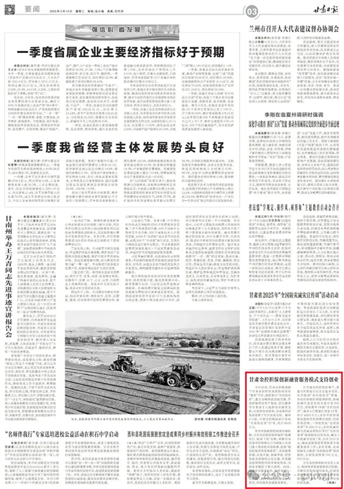 媒体关注 | 甘肃金控担保创新融资服务模式 为创业“贷”来新机遇
