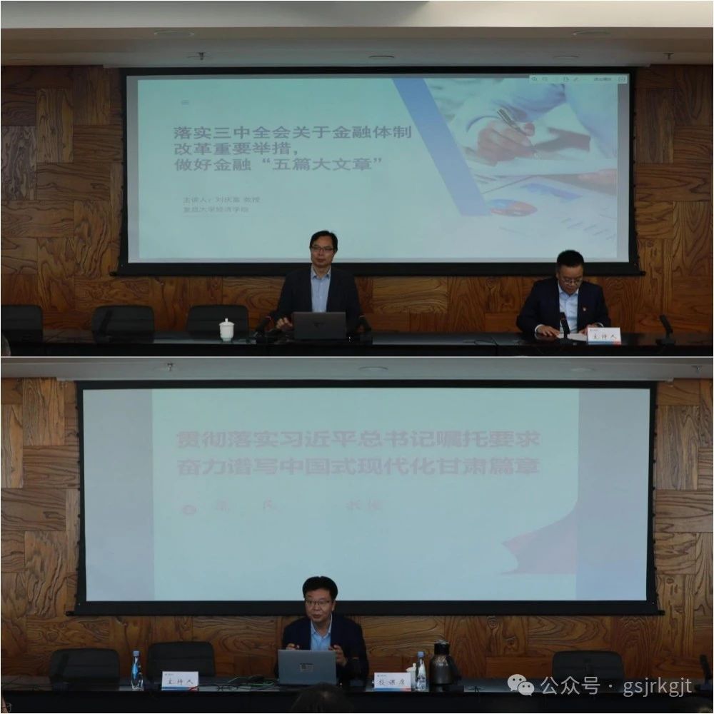 此次培训通过线上线下相结合的方式进行。培训期间,全体学员在线学习了党的二十届三中全会精神解读、构建高水平社会主义市场经济体制、健全推动经济高质量发展体制机制、提高党对进一步全面深化改革、推进中国式现代化的领导水平等内容,邀请复旦大学经济学院刘庆富教授从“党的二十届三中全会关于金融体制改革的重要举措解读、做好金融五篇大文章、异常交易的监管”三个大方面,对中国金融体制改革的历程、成效与经验,进一步深化金融体制改革的方向与重点,“金融五篇大文章”的背景、内涵与产业与落地,金融大数据风险管理等内容作了全面深入的辅导。邀请甘肃省委党校康民教授通过“讲好黄河‘故事’做足黄河文章,构建现代产业体系、发展新质生产力,贯彻三中全会精神、进一步全面深化改革,加强文化遗产保护传承、推动文化创新发展,加强社会建设和治理、提升基层治理效能,毫不放松坚持党的领导、加强党的建设”六个方面,对学习贯彻习近平总书记视察甘肃重要讲话重要指示精神,作了脉络清晰、深入细致的专题解读。