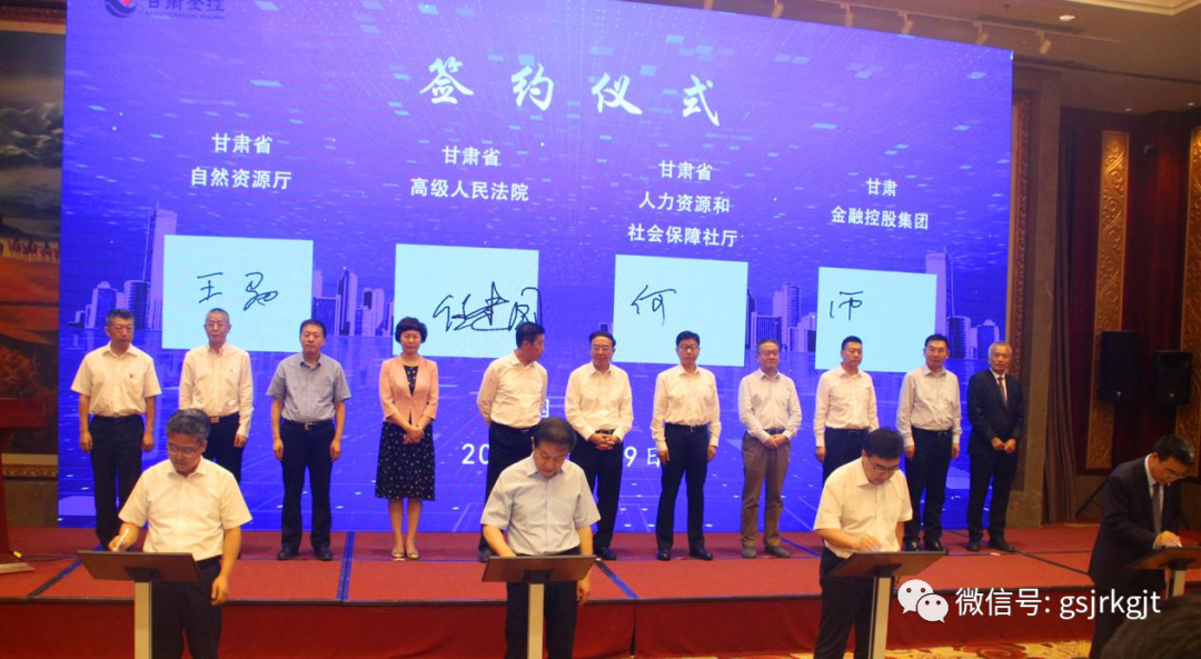 在各位领导的见证下,省法院副院长任建国、省人社厅副厅长何永强、省自然资源厅副厅长王驰分别与金控集团总经理雷铁签订战略合作协议;首批“专精特新”企业天光半导体、恒信高分子、武威型煤、普罗生物、西域食品、甘肃一德挂牌鸣锣,成功登陆甘肃股权交易中心“专精特新板”。