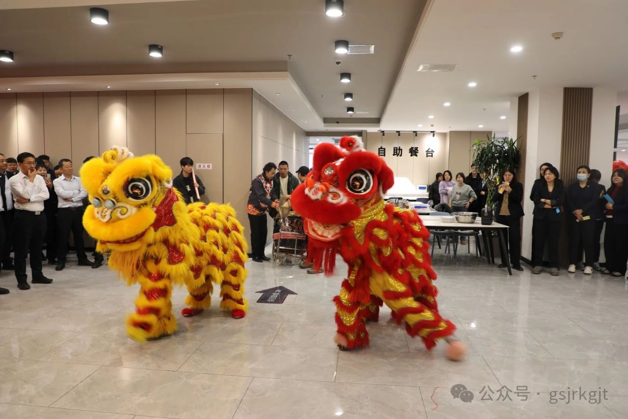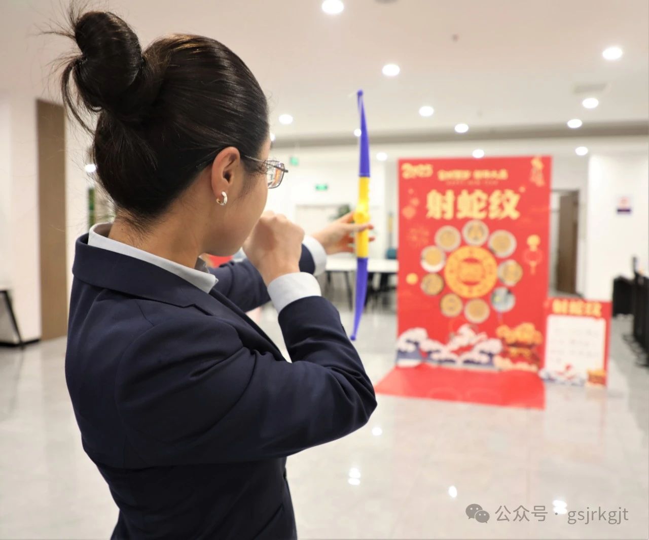 随着铿锵有力的锣鼓声,两只威武灵动的“祥瑞金狮”跃入会场,拉开活动序幕,在舞狮队员辗转腾挪间,集团公司领导执笔点睛,寓意新年开新局。随后开展的“古韵新潮”游戏区人声鼎沸,投壶游戏中的“上上签”破空声与欢呼声此起彼伏,“射箭”靶场选手凝神静气“百步穿杨”,“钓鱼”现场锦鳞翻飞笑闹如潮,套圈环节精准抛掷欢呼雀跃,冰壶赛道上更是上演“智谋对决”,团队协作的默契充分展现。现场气氛热烈,欢笑与掌声交织出欢乐的海洋。