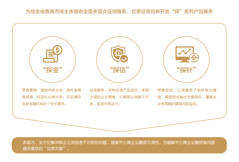 甘肃征信将整合省内信用信息资源,积极开展产品研发和服务创新,依托股东资源优势,打造本地最具影响力和公信力的综合信用服务机构。通过市场化运行机制,以更专业的技术和更优质的服务,与客户及行业伙伴协同互助,共同推进社会信用体系建设与发展。