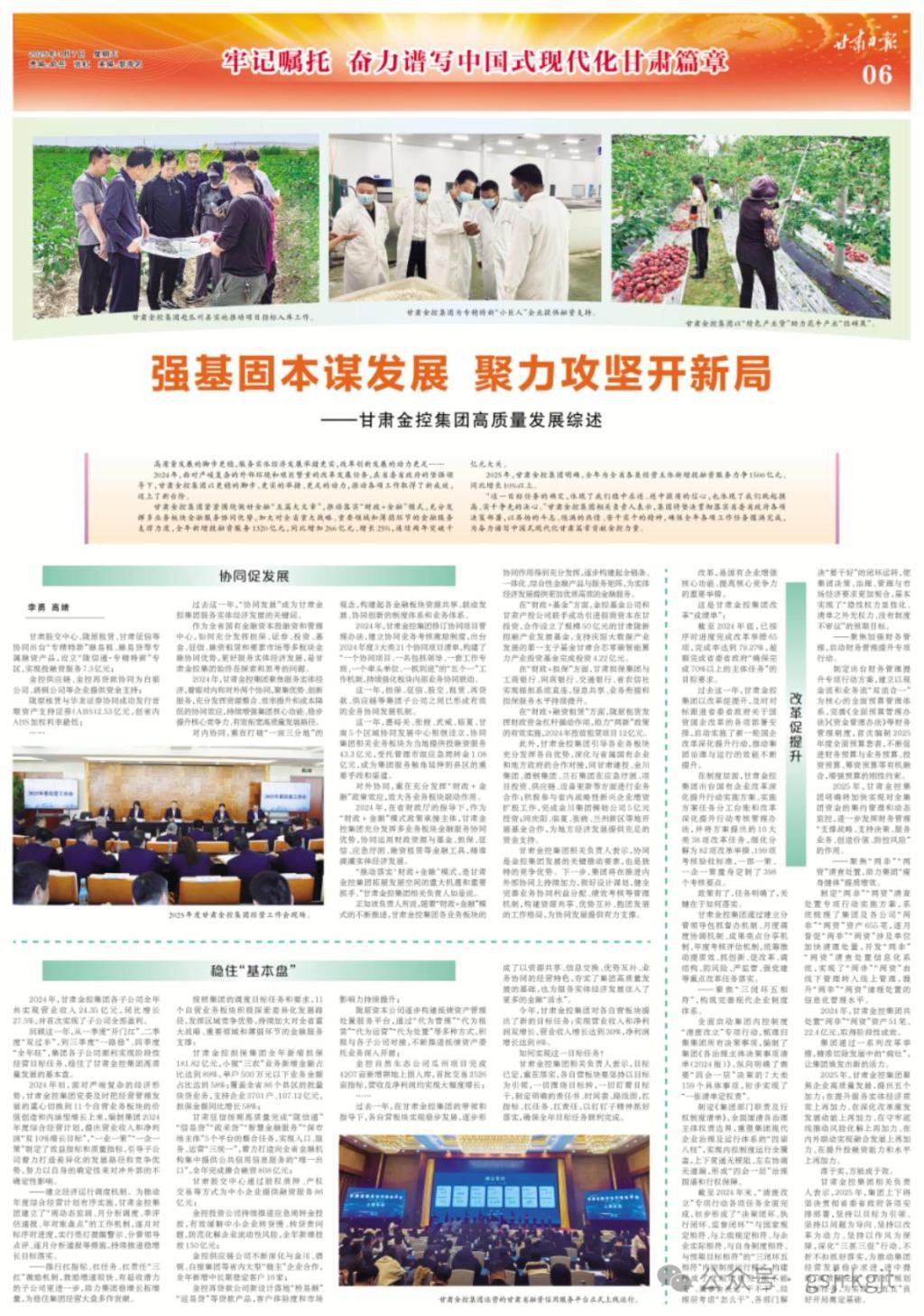 金控供应链、金控再贷款协同为白银公司、酒钢公司等企业提供资金支持;